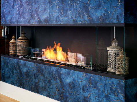 Dahili burner kit ünitesinin entegre edildiği ve önünde cam paravan kullanılan bu şömine modeli, mimarlar dekoratörler ve tasarımcılara görkemli mekanlara imza atacağı kurulumu kolay ve baca gerektirmeyen sınırsız çözüm önerileri sunuyor