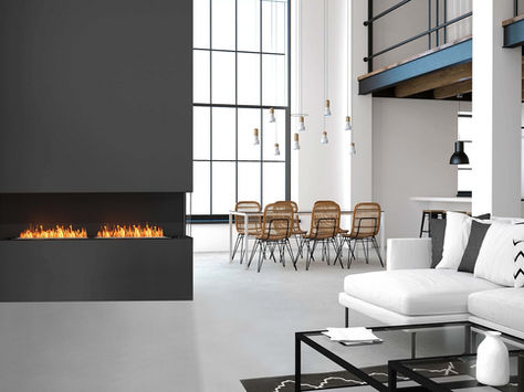Dahili burner kit ünitesinin entegre edildiği ve önünde cam paravan kullanılan bu şömine modeli, mimarlar dekoratörler ve tasarımcılara görkemli mekanlara imza atacağı kurulumu kolay ve baca gerektirmeyen sınırsız çözüm önerileri sunuyor