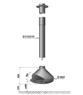 3 mm kalınlığında cor-ten çelikten yapılmıştır, bu şöminenin gövdesi 950 mm çapındadır ( Ateş haznesi ağırlığı: 53 kg). 360 derece dönebilecek şekilde yerleştiriliyor, böylece odanın herhangi bir yönüne çevilme imkanı sağlanıyor. Baca borusunun uzunluğu ve diğer adaptasyonlar ihtiyaca göre üretiliyor.